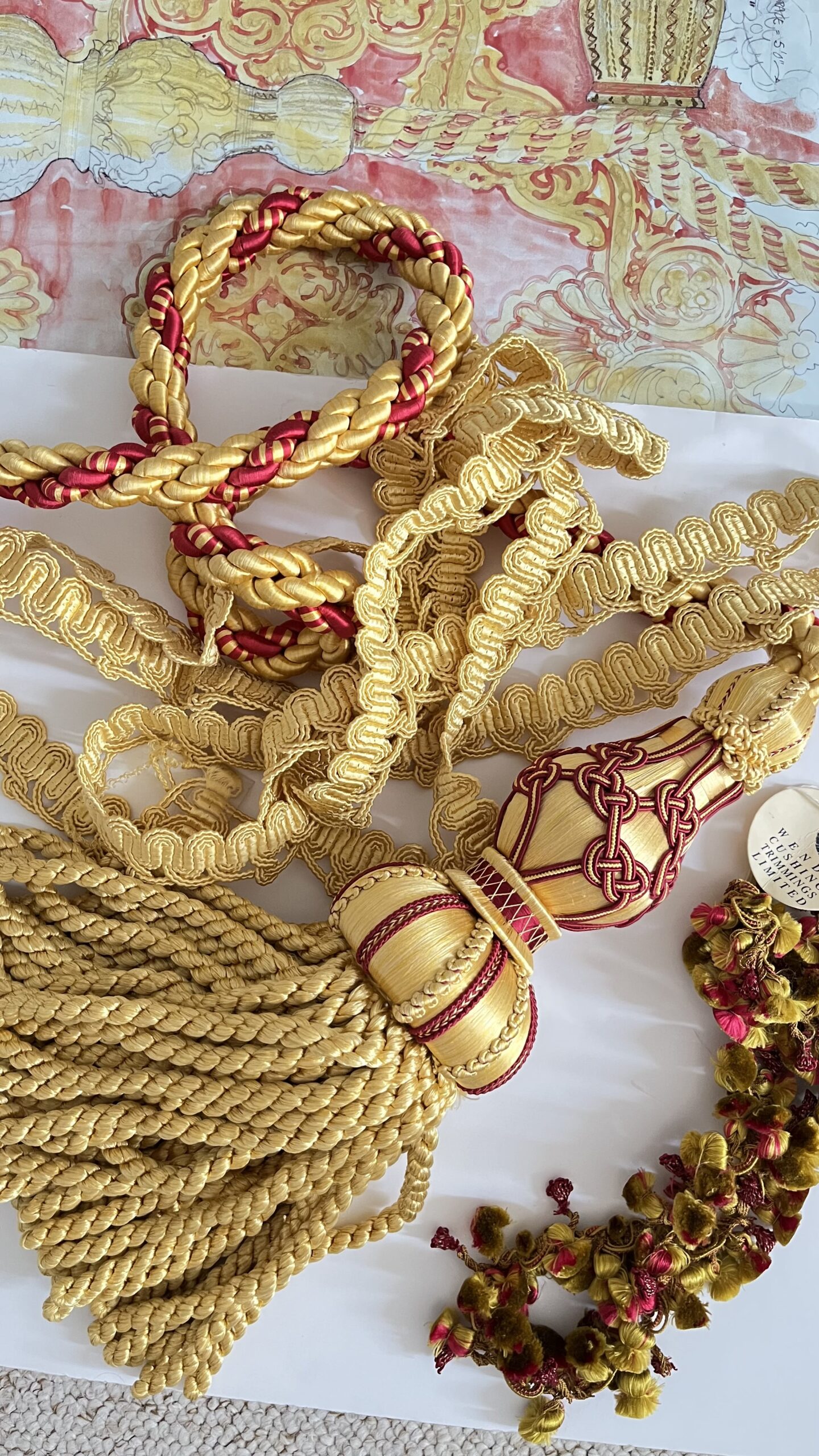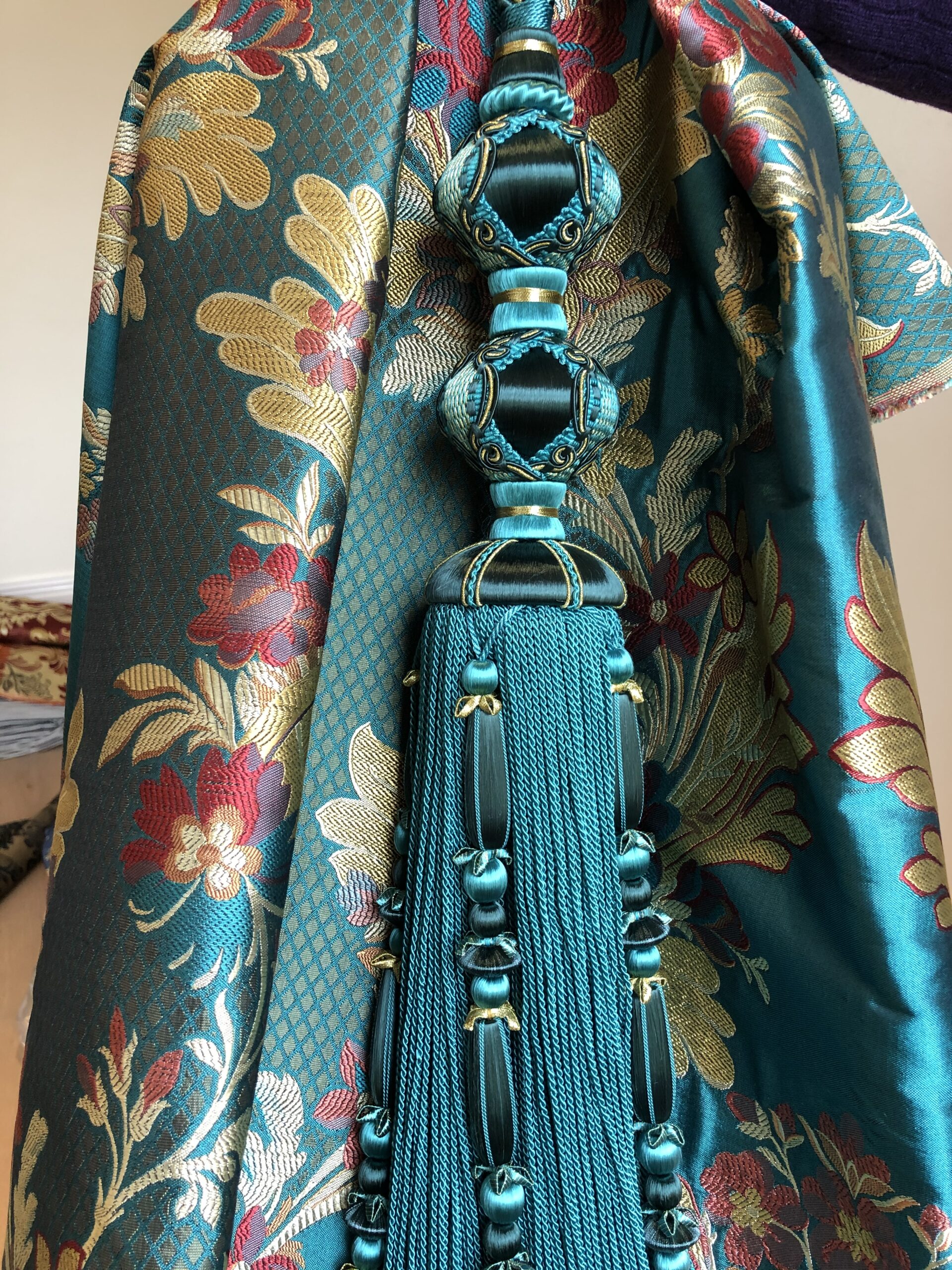 Wendy Cushing is a renowned manufacturer and designer of high- quality furnishing trimmings, Tassels and curtain tiebacks. She is a world expert in historical restorations remaking 17th and 18th century curtain trimmings for Royal Palaces and Stately homes.