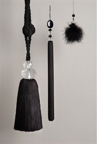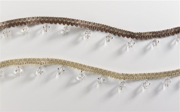 The finest crystals are used to create a unique collection of Crystal trimmings for the decoration of curtains and soft furnishings. Crystal curtain tiebacks are custom made in both traditional and contemporary styles to suit clients' requirements.