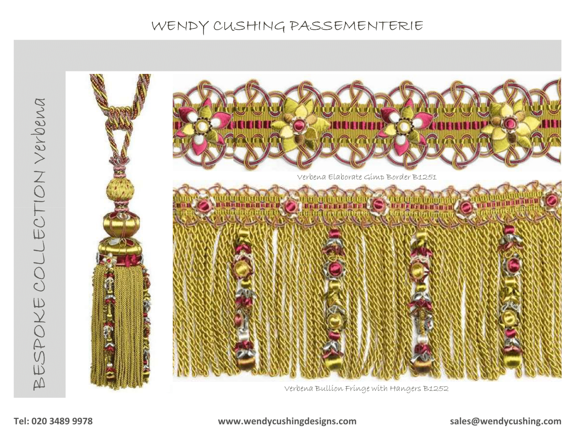 Wendy Cushing is an expert in reproducing historical passementerie with 35yrs experience in the industry she is one of the few remaining makers in the UK. Her company work with Royal Palaces and Stately Homes worldwide supplying specialist furnishing trimmings.